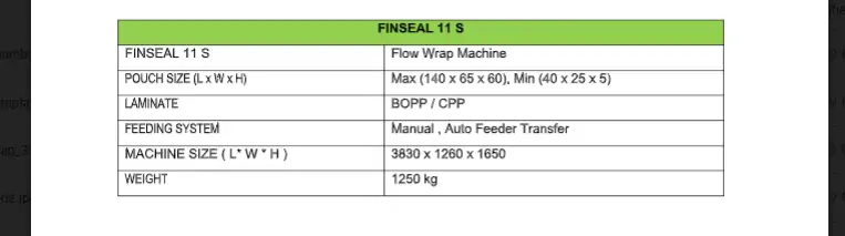 Finseal 11S is a horizontal form fill and seal machine specifically designed to wrap soaps in a three side sealed pouch. The Machine has indexed belt infeed which can either be directly connected to the discharge belt of the upstream machine which is running at the matched speed, or can be manually loaded. All drives are primarily mechanical. Automation skill level is therefore, not required for maintenance of this machine.